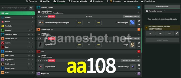 O aa108 oferece uma grande seleção de opções de apostas em e-sports com probabilidades competitivas